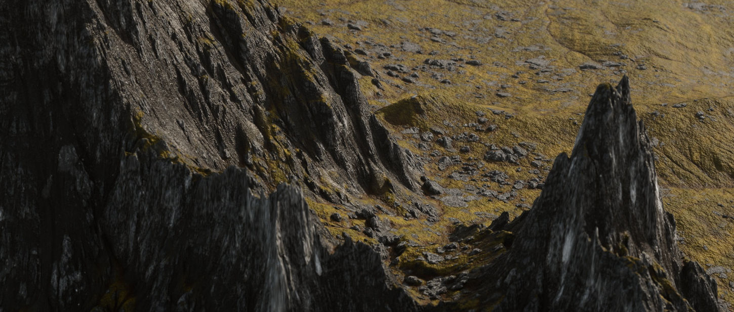 My goal was to make compelling and realistic landscapes. I wanted to achieve this only using the output maps provided by Gaea. That being said, I did scatter some Speedtree trees for one of them.